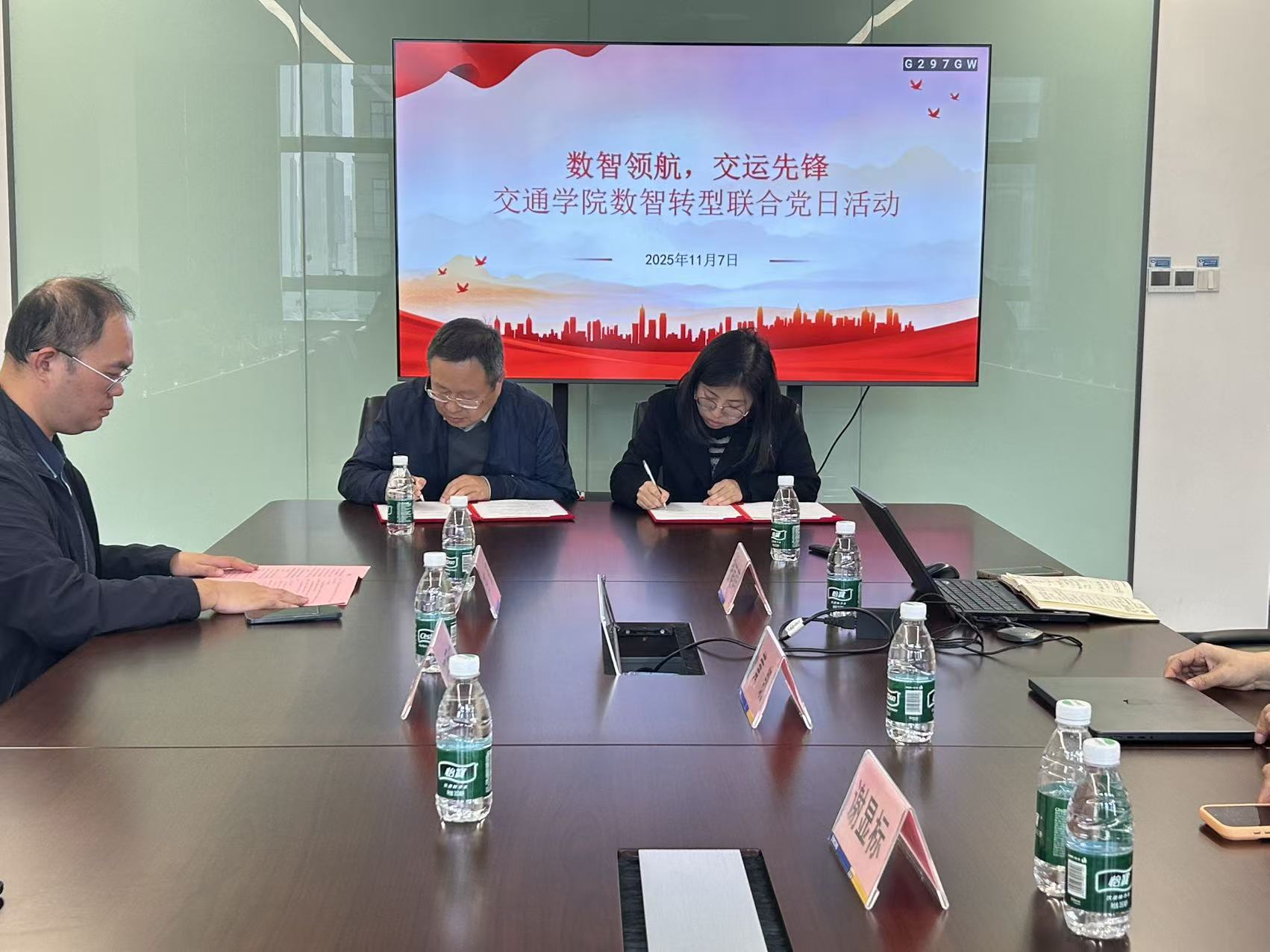 活动最后,双方郑重签署了党建共建协议书,未来将在组织共建、资源共享、活动共促、人才共育四个方面展开深度合作。此次共建不仅为校企协同育人搭建了新平台,也为交通行业的数智化发展注入了新动能。