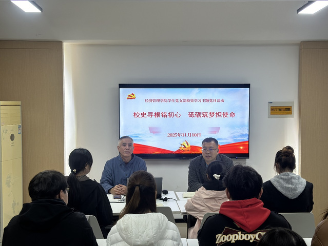 为引导学生党员从学校发展历程中汲取精神力量,淬炼入党初心、强化使命担当,近日,经济管理学院学生党支部组织开展“校史寻根铭初心 砥砺筑梦担使命”主题党日活动。活动特邀亲历学校军校、煤建校及建筑学院三个历史阶段的退休教师白海云、经济管理学院党总支副书记崔廷锋及支部全体党员、发展对象一同,共溯峥嵘校史,凝聚奋进力量。