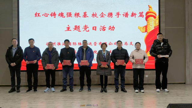 为深入学习贯彻党的二十届四中全会精神,推动党建引领下的校企资源共享和优势互补,12月23日下午,经济管理学院党总支与徐州淮海国际陆港运营有限公司党总支联合举办“红心铸魂强根基 校企携手谱新篇”主题党日活动。陆港集团党委委员、纪委书记吴传东,校党委委员、党委组织部部长、党委统战部部长宋丹萍,校纪委副书记、纪委办公室主任朱晖出席活动。徐州淮海国际陆港运营有限公司党总支和学院党总支全体党员参加。活动由学院党总支书记李国琴主持。